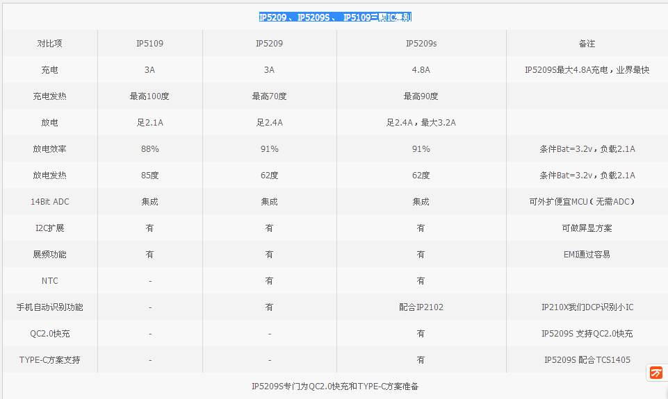 IP5209 、IP5209S 、 IP5109三颗IC对比图如下: