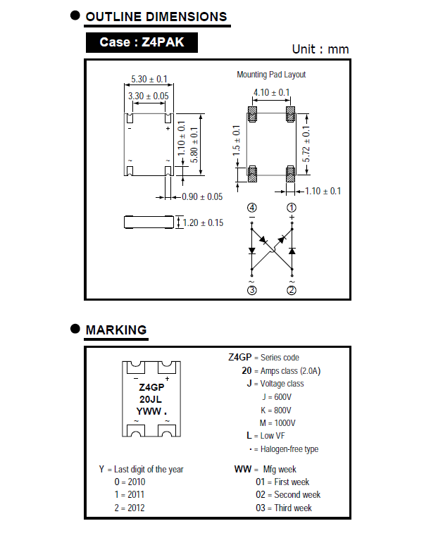 2A/1000V 贴片桥堆 Z4GP20MLH 规格书,PDF,数据手册---科瑞芯公司