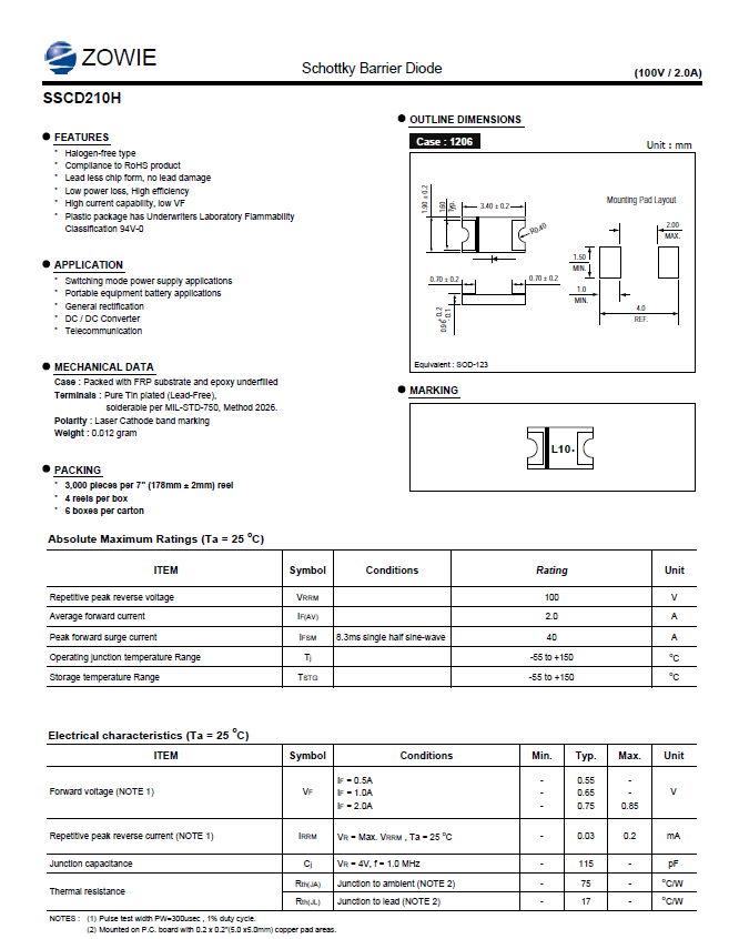 2A 100V肖特基二极管 SSCD210H -深圳市科瑞芯电子有限公司