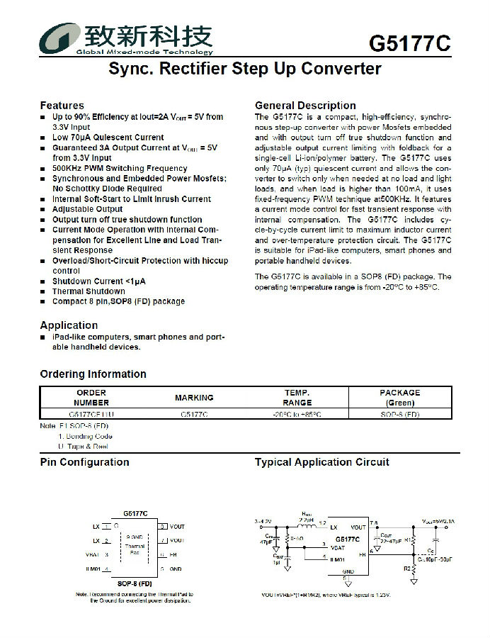 +WIFI方案的。 G5177C完全代替G5177A(1A)、G5177B(1.5A),无须修改外围电路,公