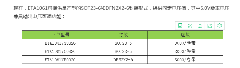 是理想的解决方案,需要低待机功率和紧凑的电路板尺寸,ETA1061是SOT23-6封装