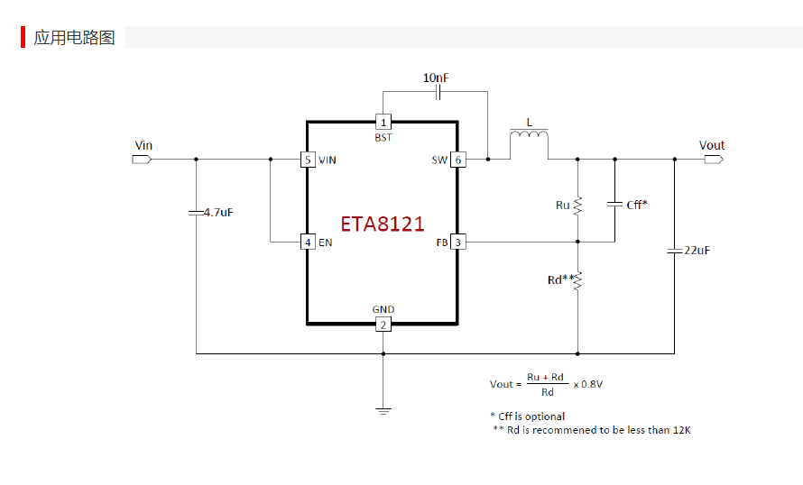 ETA8121还采用强制PWM控制方案,从而保证了纹波电压。它的输入可以承受浪涌电压为30v一样高,使它的工业应用如监控摄像机,液晶电视的一个理想的解决方案,机顶盒等。