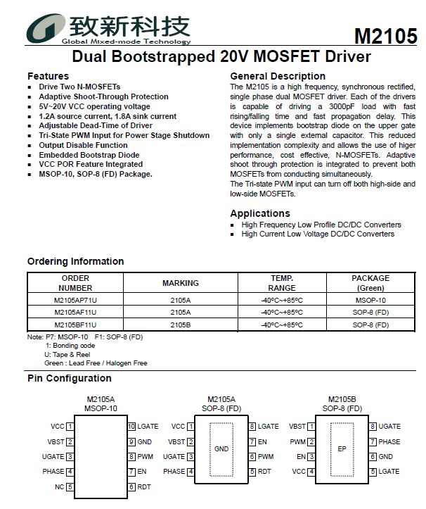 台湾致新双路20V无线充电驱动芯片--- M2105AP71U