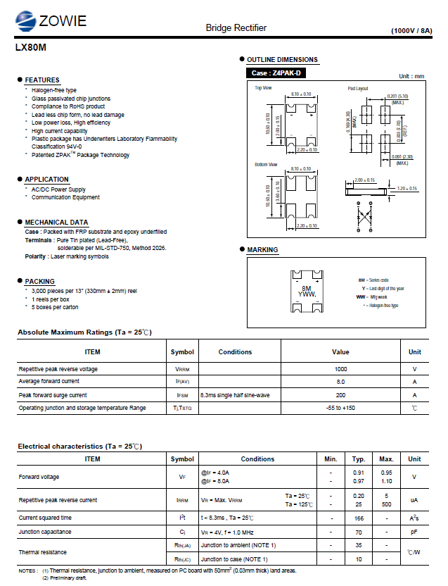 LX80M 8A 1000V 贴片超溥桥堆