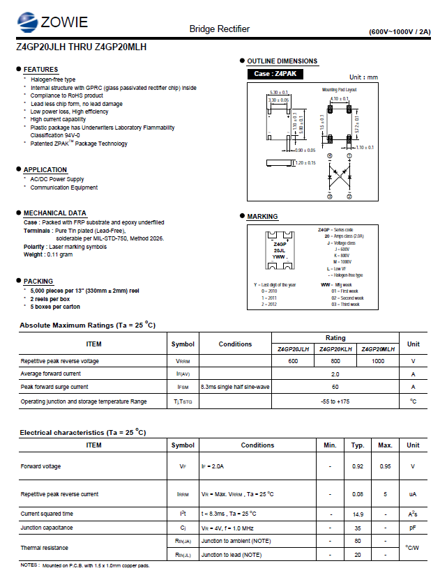 2A 1000V Z4GP20MLH