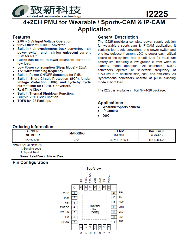i2225RV1U 适用于耐磨/运动型CAM和IP-CAM