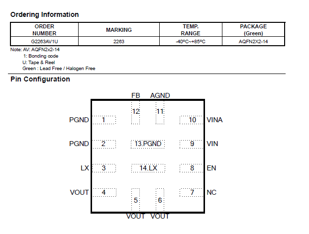 The G2263 is available in AQFN2x2-14 package.