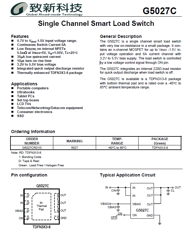 G5027CRD1D 单通道智能负载开关