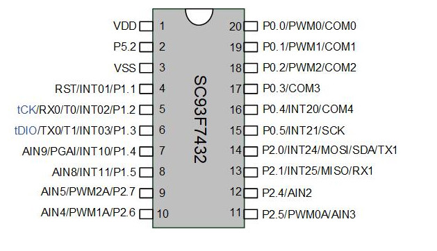 SC93F7433/7432 (以下简称SC93F743X)是-颗增强型的超快速1T 32位总线8051内核工业级的Flash微控制器,指令系统完全兼容传统8051产品系列,在相同工作主频下较其它1T 8051内核MCU速度快约2倍。