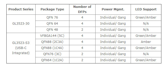不同的零件号,GL3523还集成USB Type-C功能(GL3523- s)。