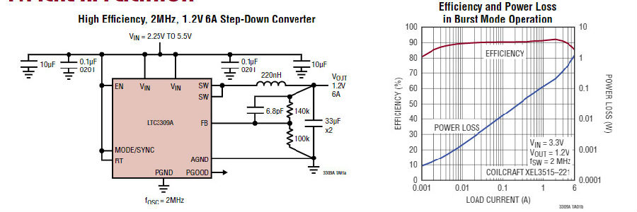 LTC R3009A是一种非常小,高效率,低噪声的单片同步6A降压DC/DC转换器,工作在2.25V到5.5V的输入电源。使用恒定频率,峰值电流模式控制在开关频率高达3MHz和zui小接通时间低至22ns,该调节器实现快速瞬态响应与小的外部组件。静音开关结构zui大限度地减少EMI排放。