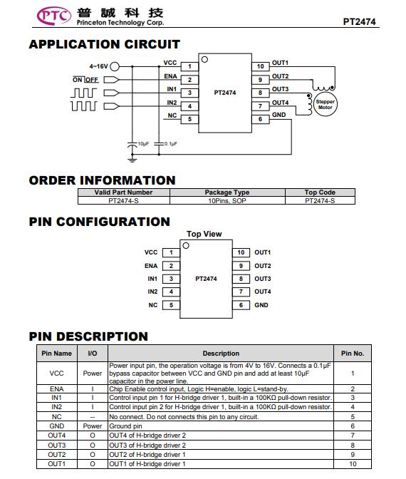常备库存 PT2474 普诚科技 双极型步进电机驱动器