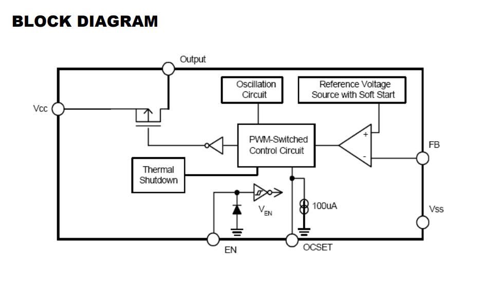 With the addition of an internal P-channel Power MOS,a coil, capacitors, and a diode connected externally,these ICs can function as step-down switchingregulators. They serve as ideal power supply units forportable devices when coupled with the SOP-8mini-package, providing such outstanding features aslow current consumption. Since this converter canaccommodate an input voltage up to 20V, it is alsosuitable for the operation via an AC adapter.