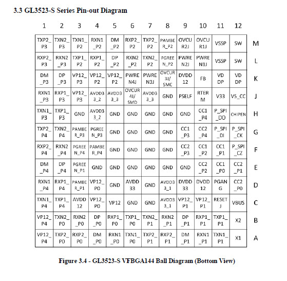 创惟科技-GL3523-S3-VFBGA144  USB3.1一代集线器控制器