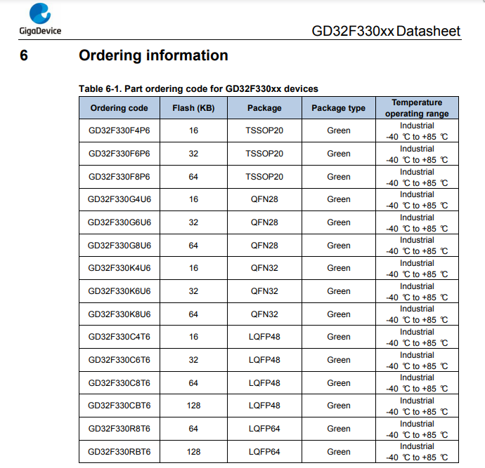 The GD32F330xx device belongs to the value line of GD32 MCU family. It is a new 32-bit general-purpose microcontroller based on the ARM® Cortex®-M4 RISC core with best costperformance ratio in terms of enhanced processing capacity, reduced power consumption and peripheral set. The Cortex®-M4 core features implement a full set of DSP instructions to address digital signal control markets that demand an efficient, easy-to-use blend of control and signal processing capabilities. It also provides a powerful trace technology for enhanced application security and advanced debug support.