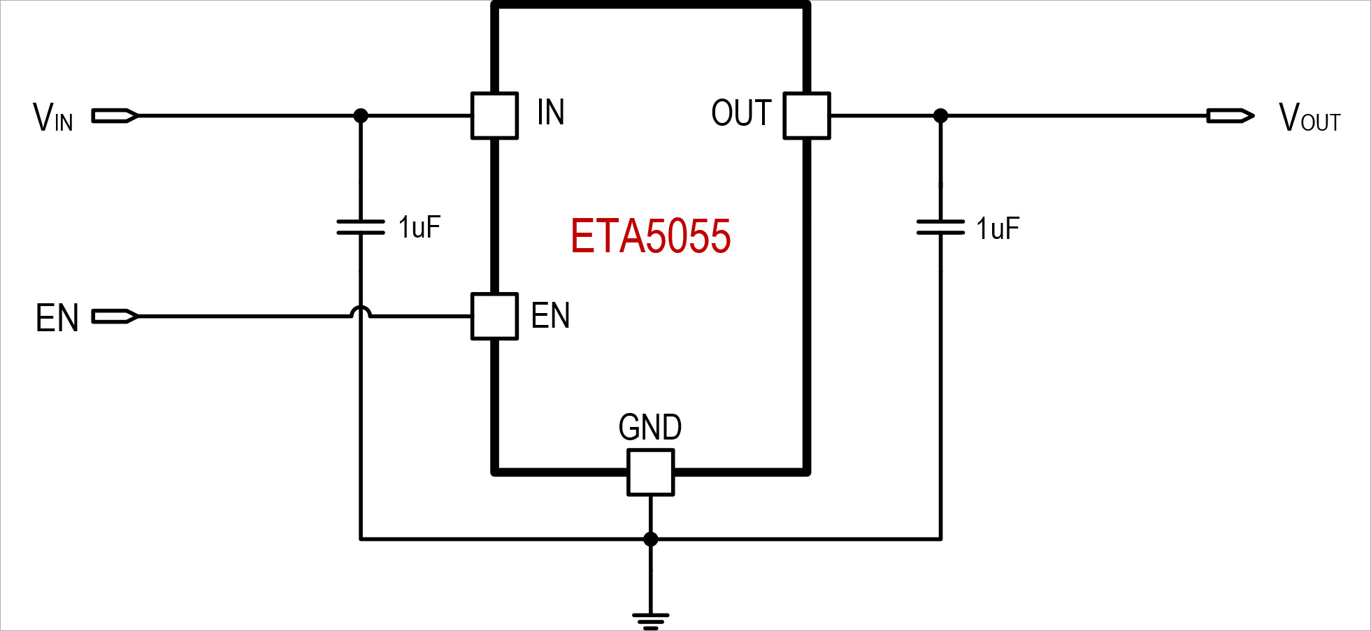 ETA5055 is a low-dropout (LDO) linear voltage regulator that features ultra-high power supply rejection ratio (PSRR), ultra-low quiescent current, fast start-up, and excellent line and load transient responses. Its PSRR can be as high as 102dB at 1.2V output.
