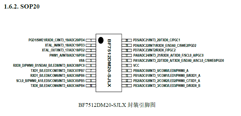 BF7512DMXX-XJLX包含外设有看门..、LED串行点阵驱动、IIC、UART、低电压检测、掉电复位、3路16bit PWM、Timer0、Timer1、Timer2、12bit高jing度逐次逼近ADC、低功耗模式等。