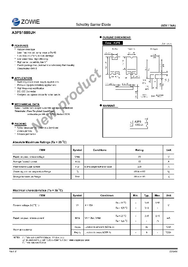 | 产品类别: | ZOWIE- 肖特基二极管 |
