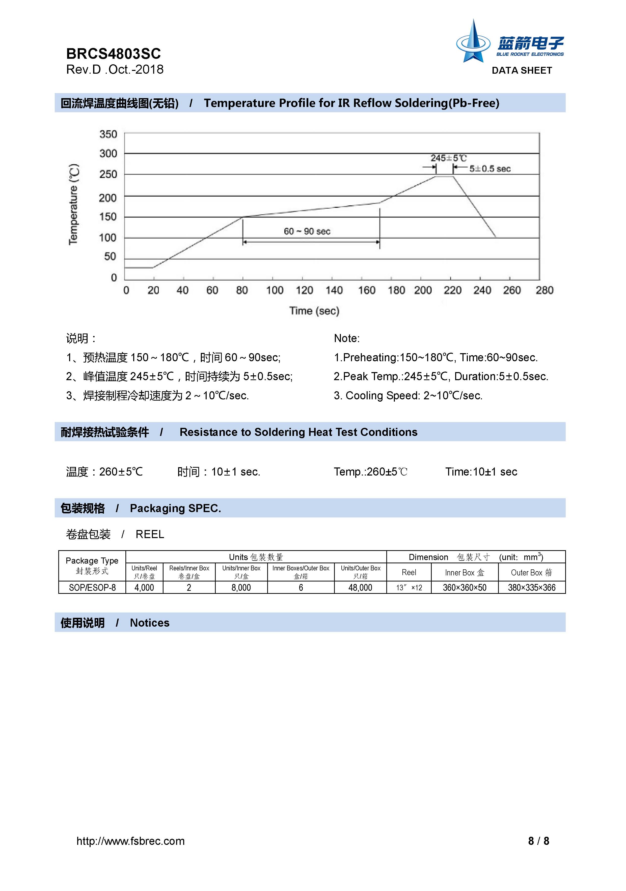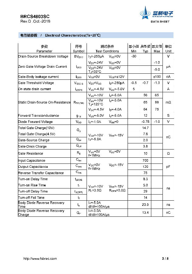 蓝箭P沟道MOS管 BRCS4803SC SOP-8封装