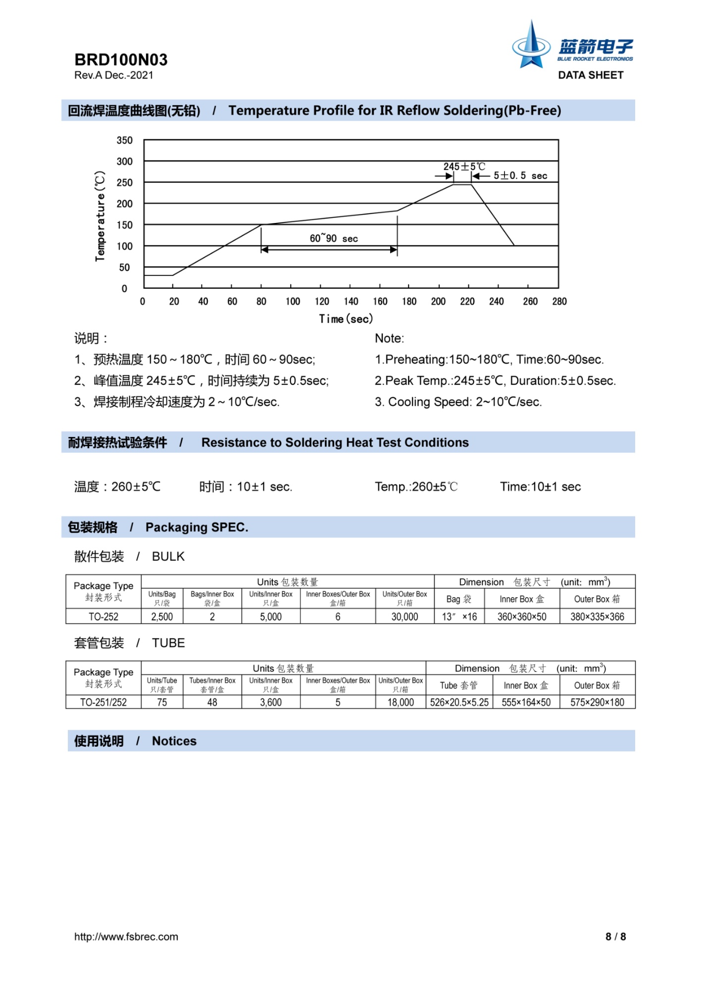 蓝箭 BRD100N03 TO-252 N沟道MOS场效应管