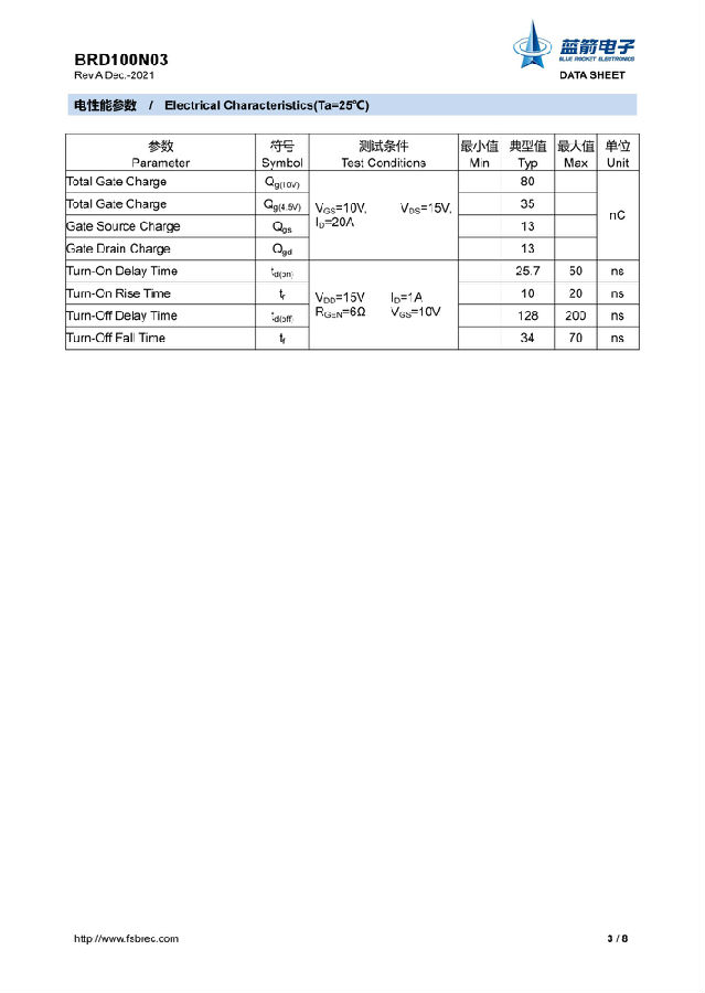低栅电荷,低反馈电容,开关速度快。无卤产品。