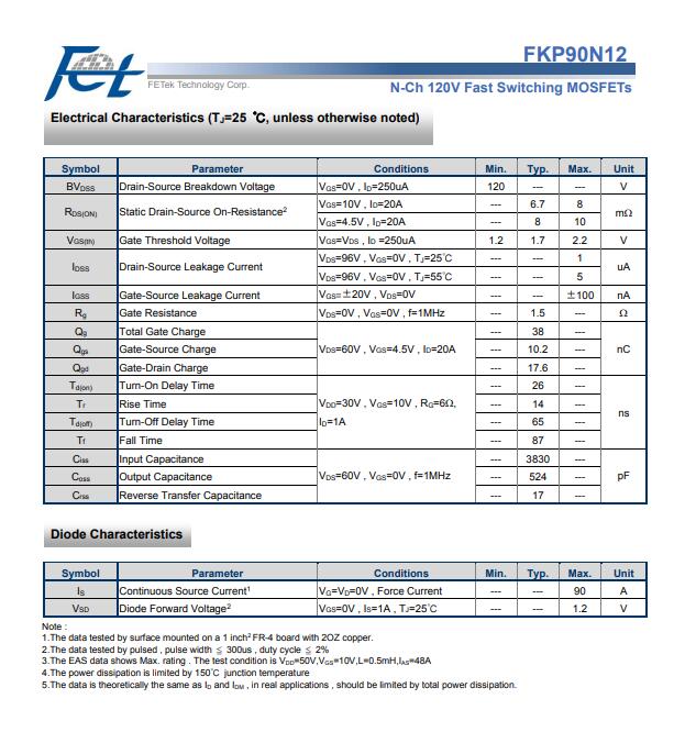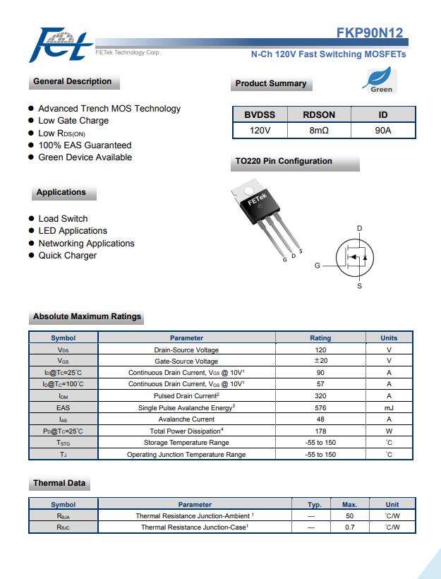 LED应用芯片 FKP90N12 东沅MOS管