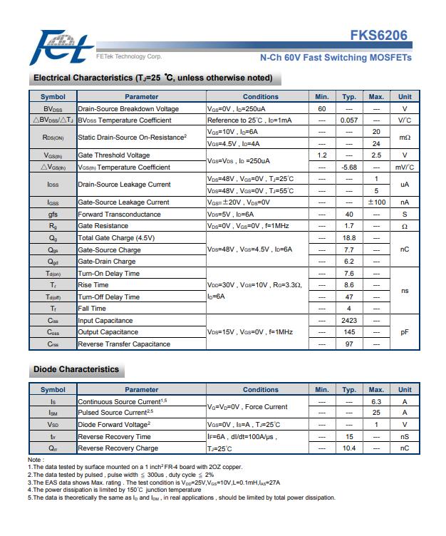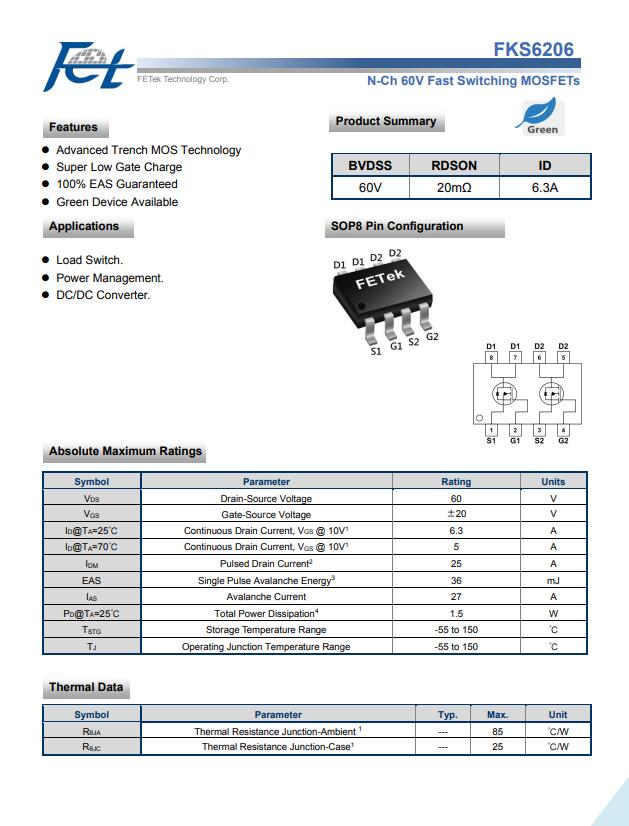 FKS6206 东沅N沟道MOS管 电源管理芯片