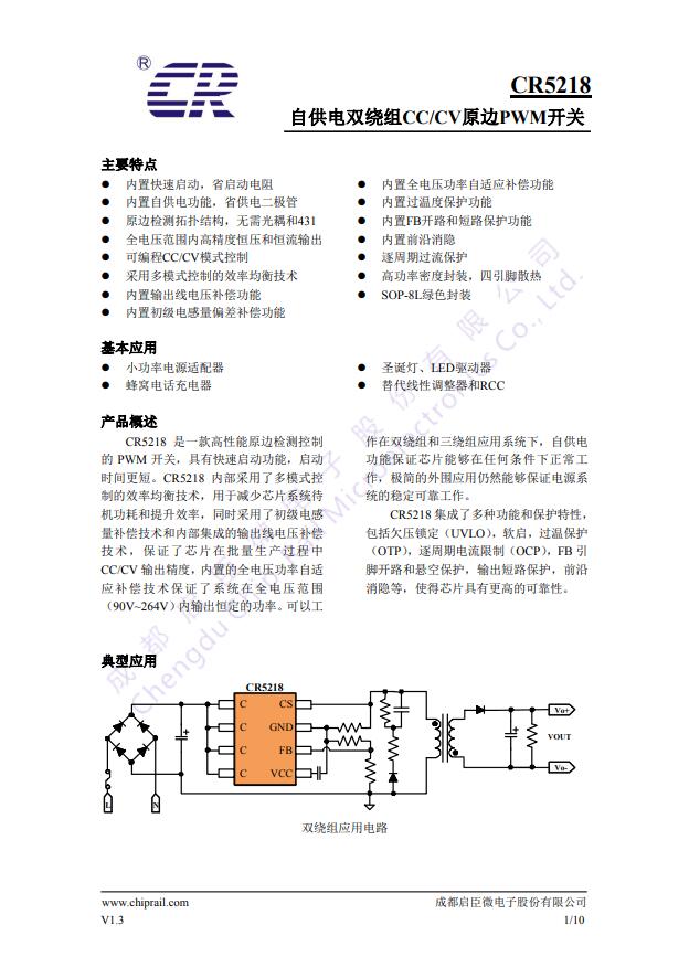 CR5218 Chip-Rail启臣微 PWM功率开关芯片