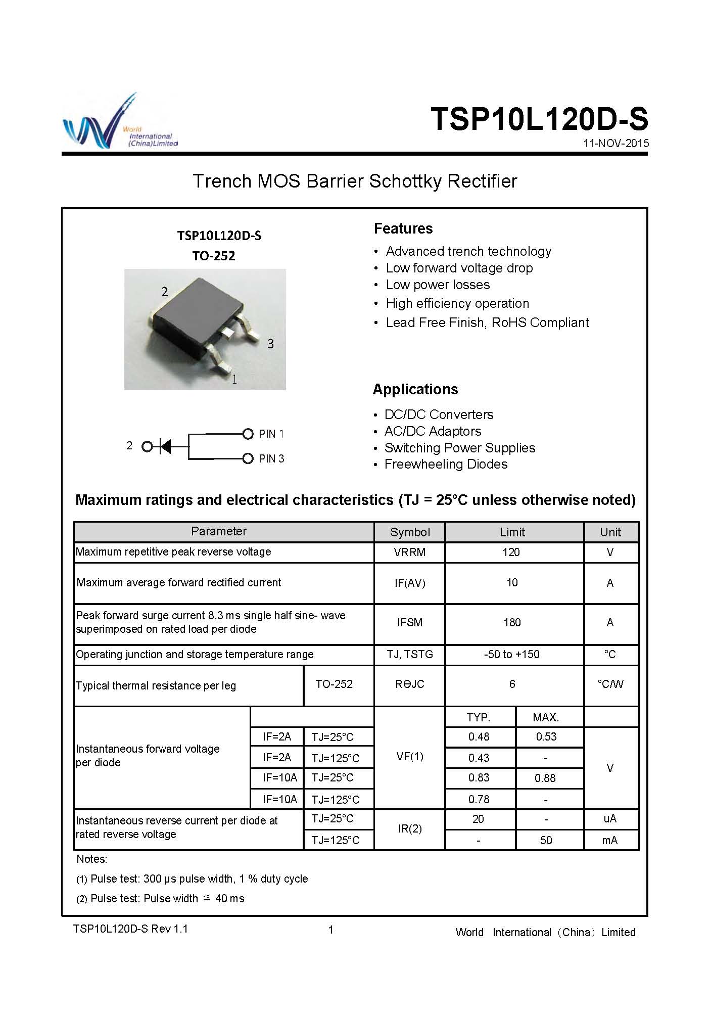 原装供应 TSP10L120D-S 沃尔德低VF肖特基