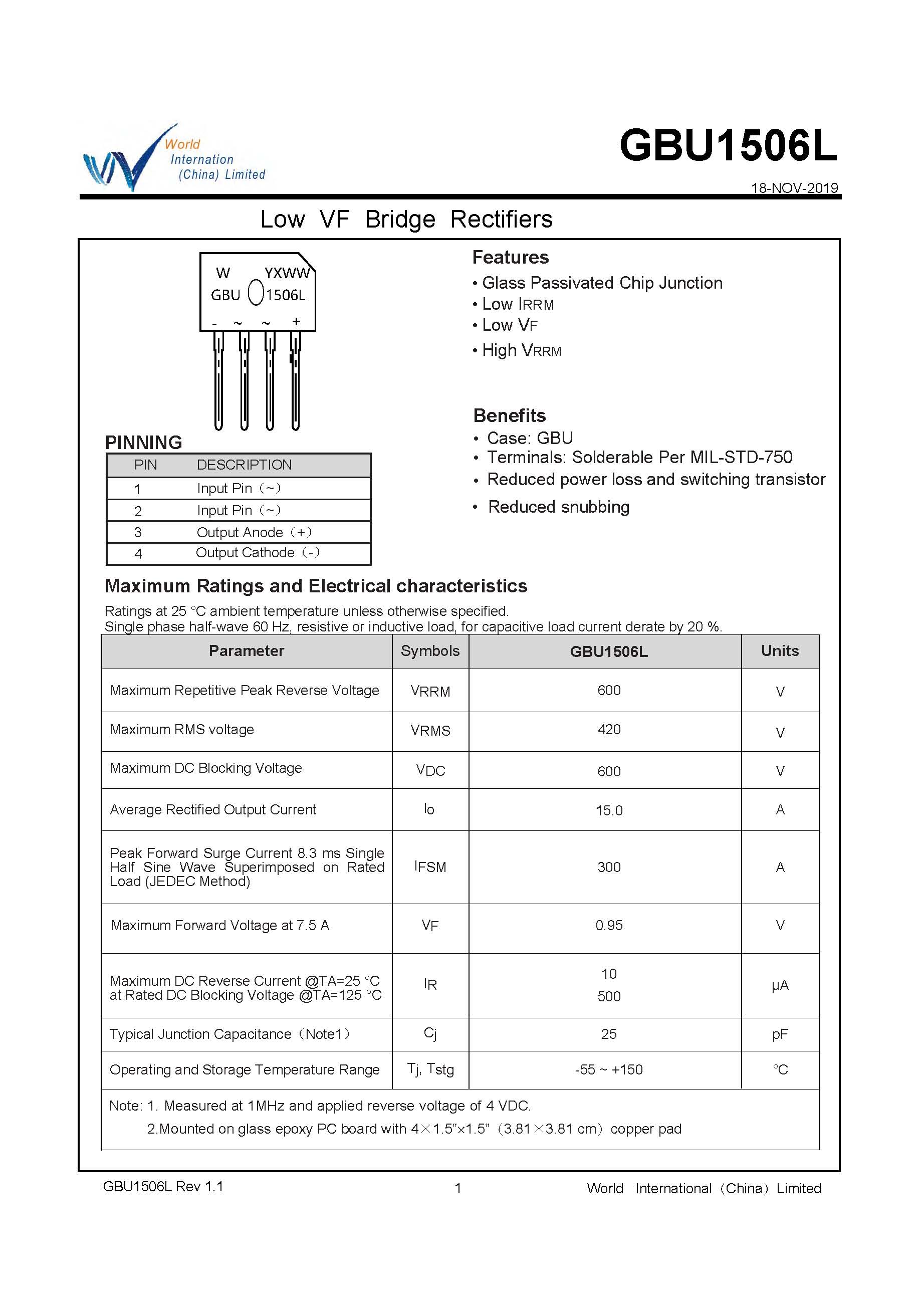 代理 GBU1506L 沃尔德桥堆 深圳现货