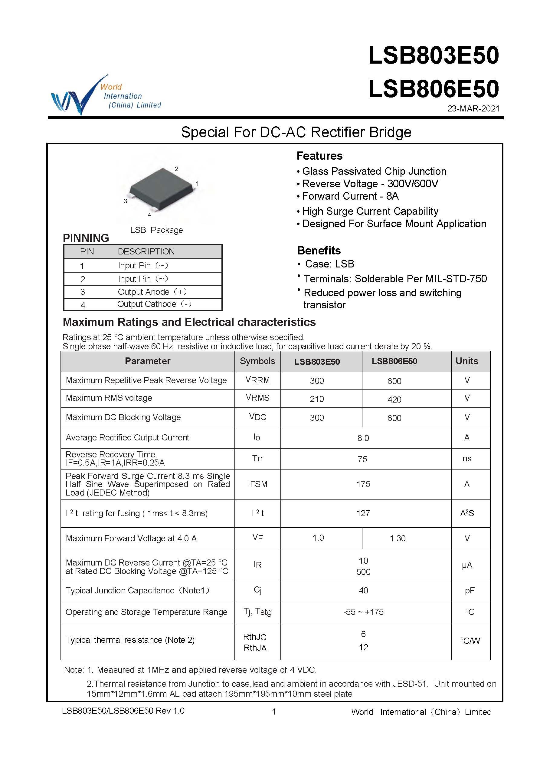 沃尔德桥堆 LSB806E50 逆变桥系列