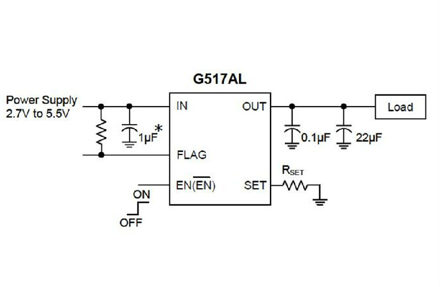 The G517 is an integrated power switch for self-powered and bus-powered Universal Serial Bus (USB) applications.