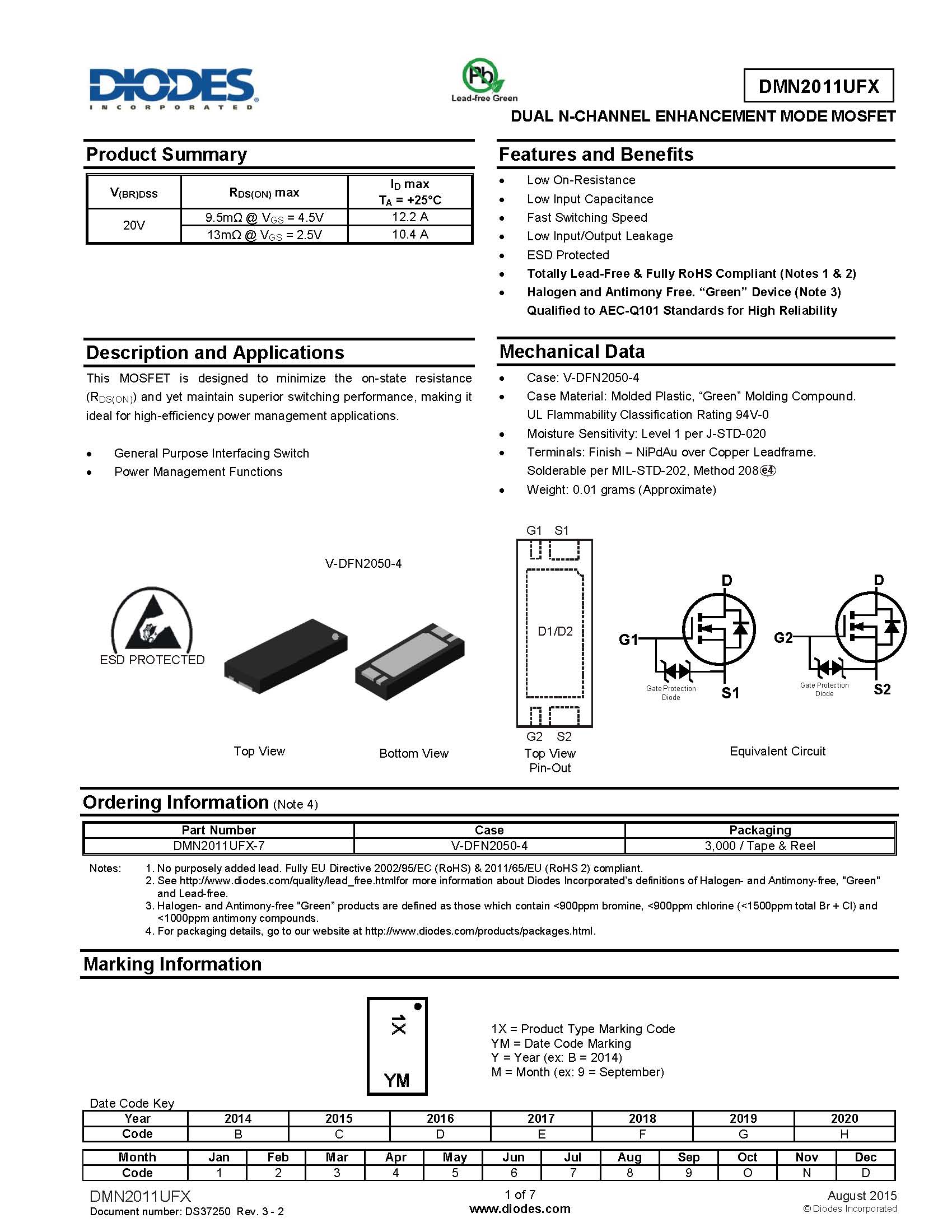 供应DIODES达尔 DMN2011UFX-7 双N沟道增强型MOSFET
