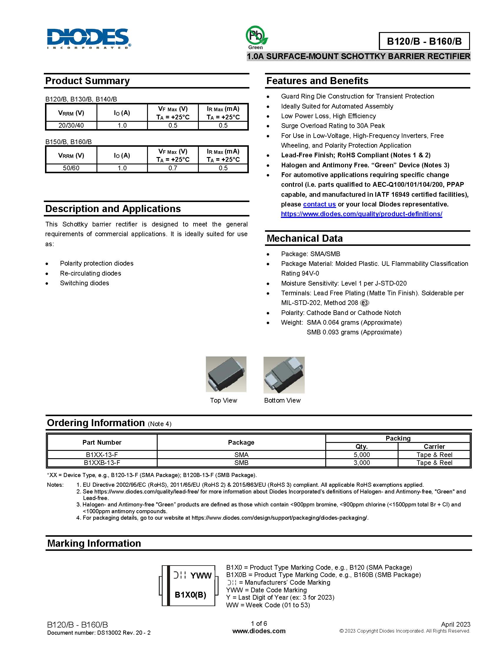 代理DIODES达尔 B130-13-F 肖特基势垒整流器