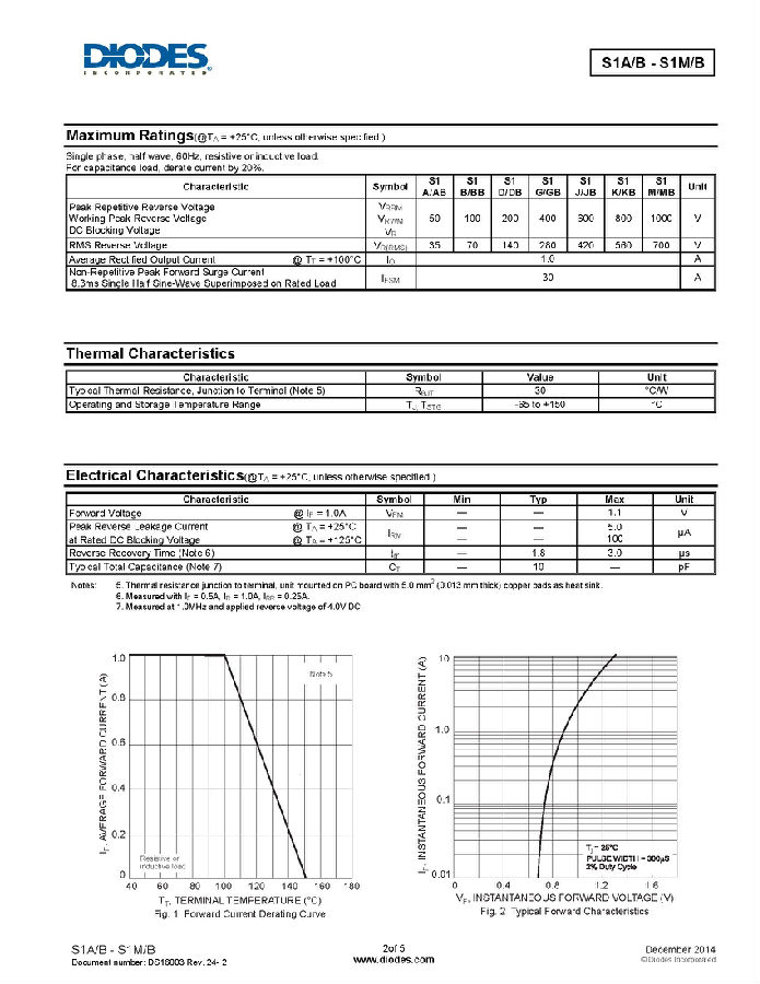 DIODES达尔 S1G-13-F 1.0A表面贴装玻璃钝化整流器